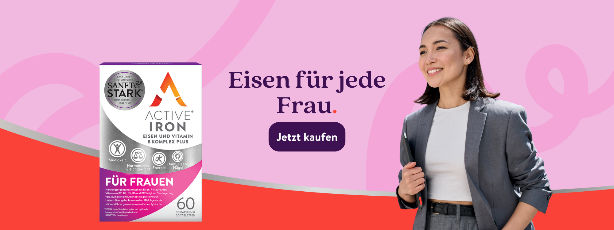 Active Iron für Frauen enthält sowohl Active Iron als auch ein speziell formuliertes Multivitaminpräparat und bietet damit eine umfassende Ernährungsunterstützung für Frauen.