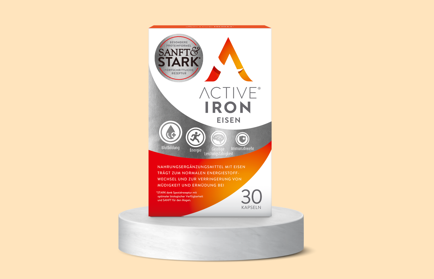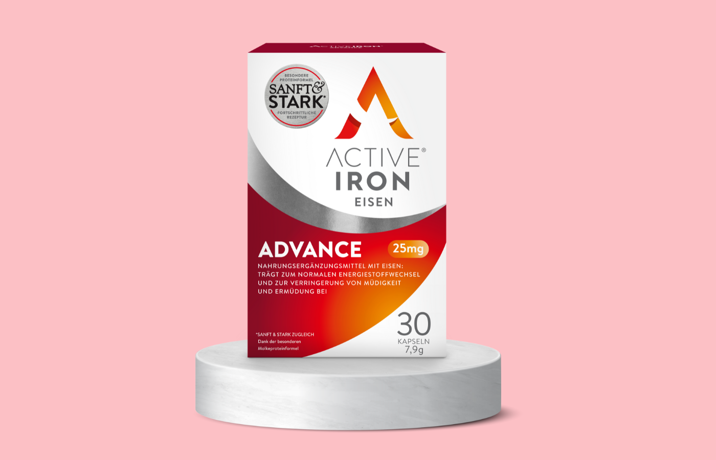Active Iron Advance erhöht den Eisenspiegel und unterstützt die Hämoglobinbildung*, was durch klinische Studien belegt werden konnte. Die bahnbrechende Proteinformel von Active Iron zielt auf den natürlichen Ort der Eisenaufnahme im Körper, das DMT-1. Dies sorgt für eine 2-fach bessere Aufnahme des Körpers von Eisensulfat.