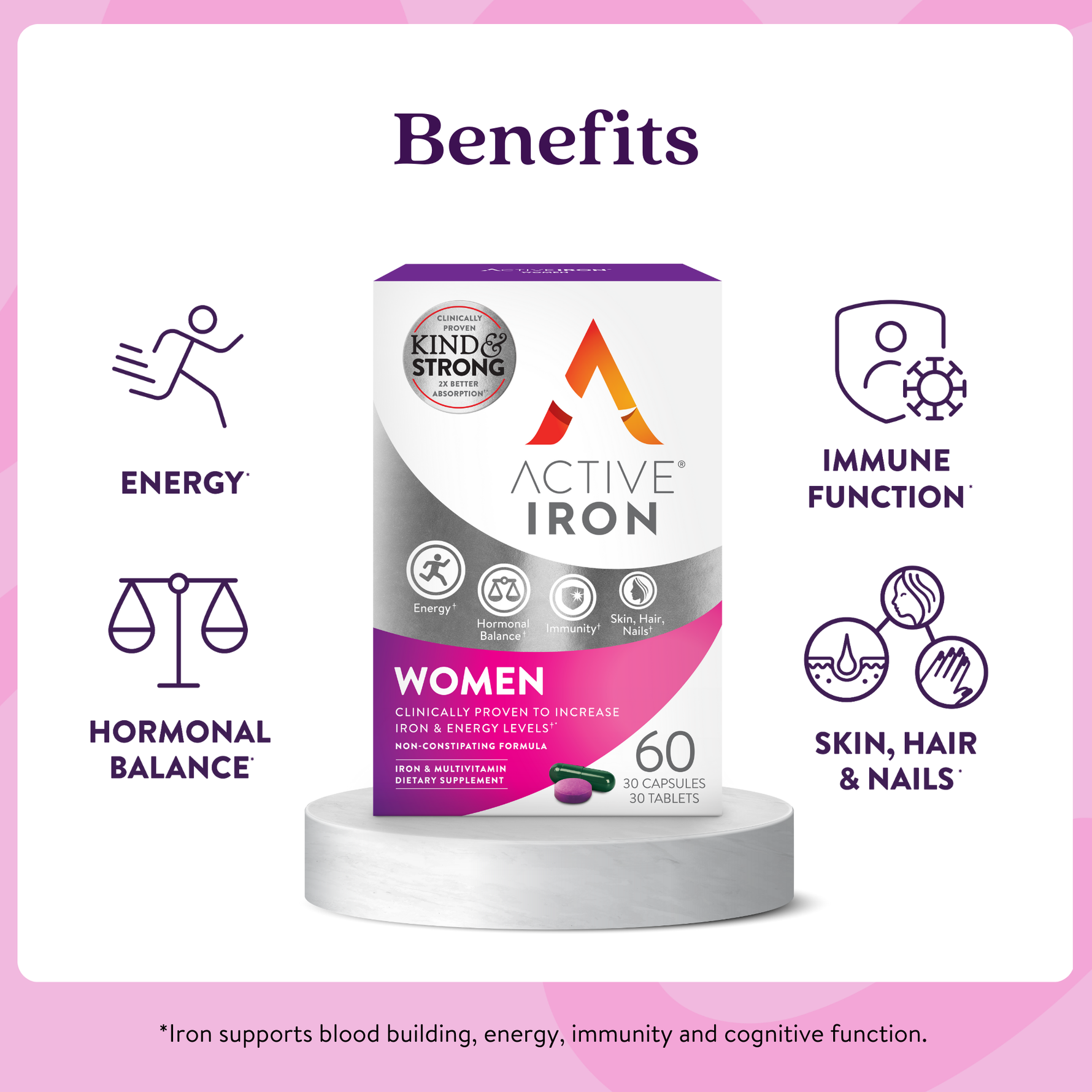 Active Iron Women With Active Multivitamin | 30 Iron Capsules and 30 Active Multivitamins