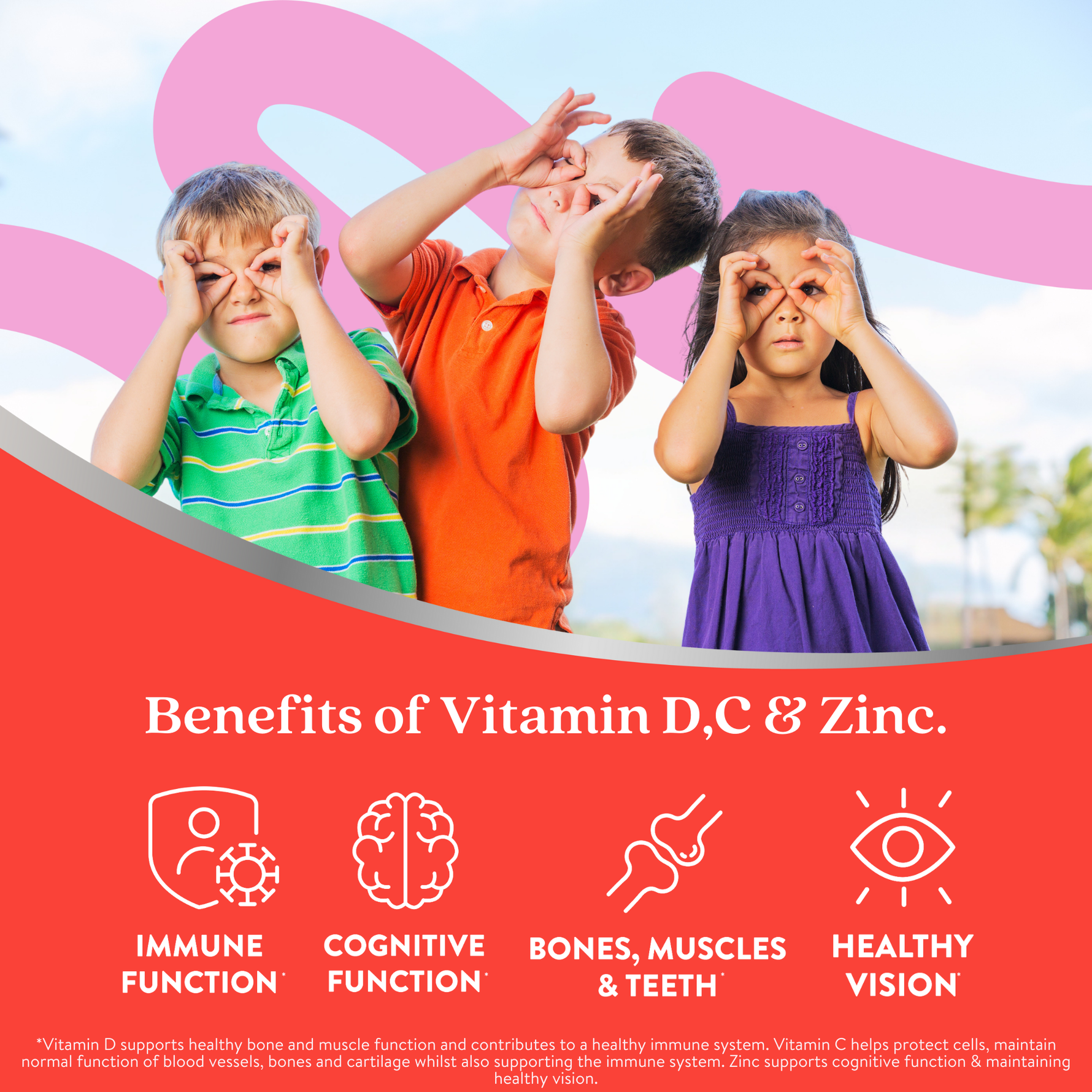 - Vitamin D is known as the sunshine vitamin. It can be difficult to maintain Vitamin D levels, particularly during the winter months. Vitamin D contributes to a healthy immune system. Vitamin D is needed for the normal growth and development of bones in children.