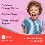 Active Immune for Kids | Vitamins D C and Zinc | Vitamins for Kids Immune System | 60 Orange Flavoured Chews